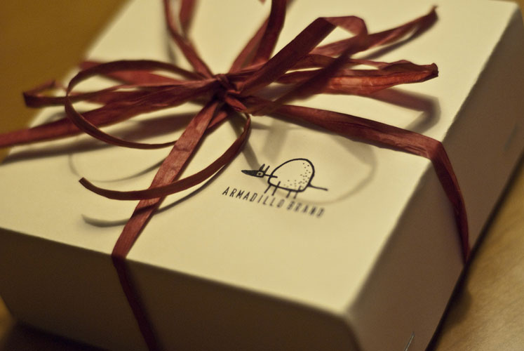 armadillo brand (2009-) brand concept for personal christmas presents. includes packaging for home made confectionery, bakery products, cds etc. |